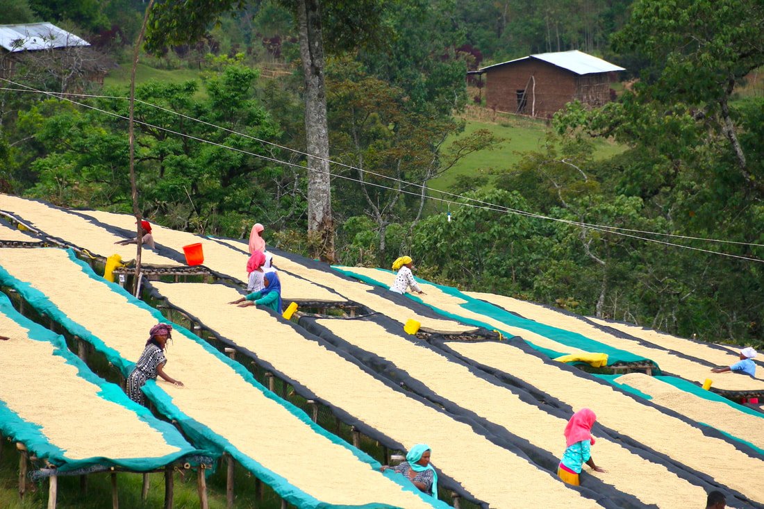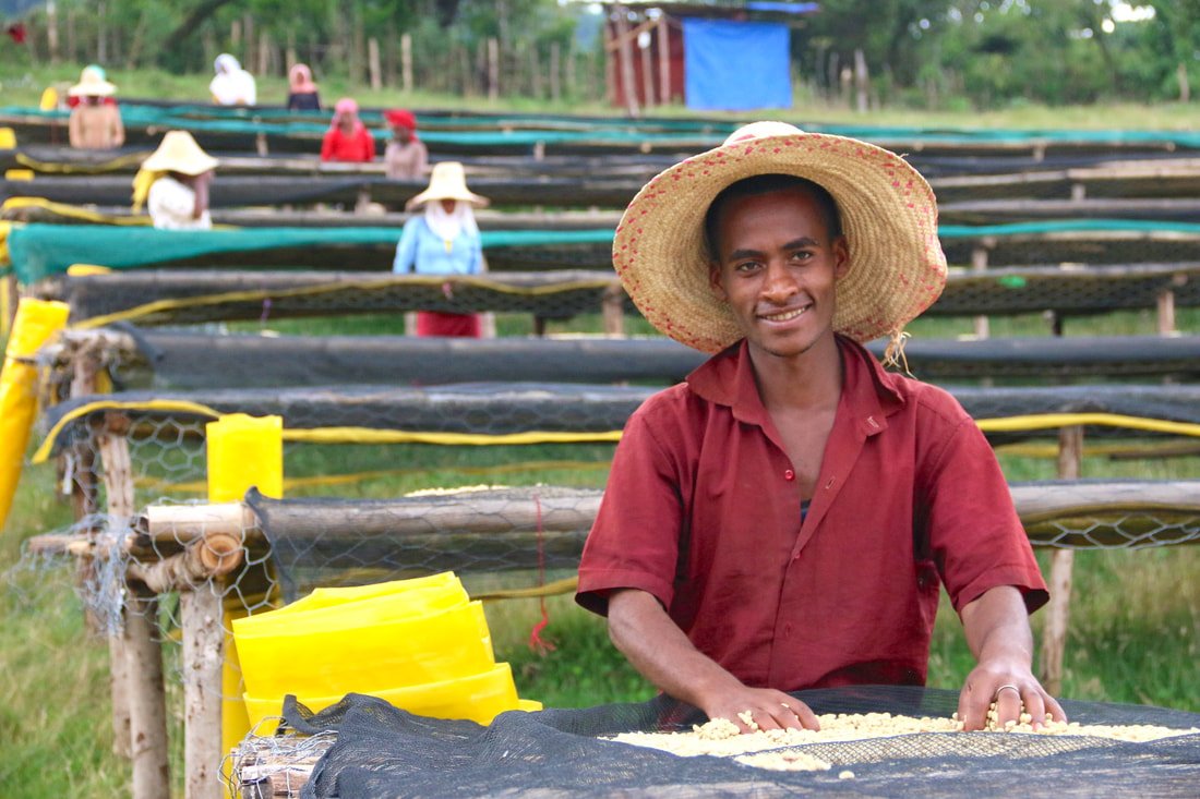 praná káva s jednoduchou fermentací, sušená na afrických postelích