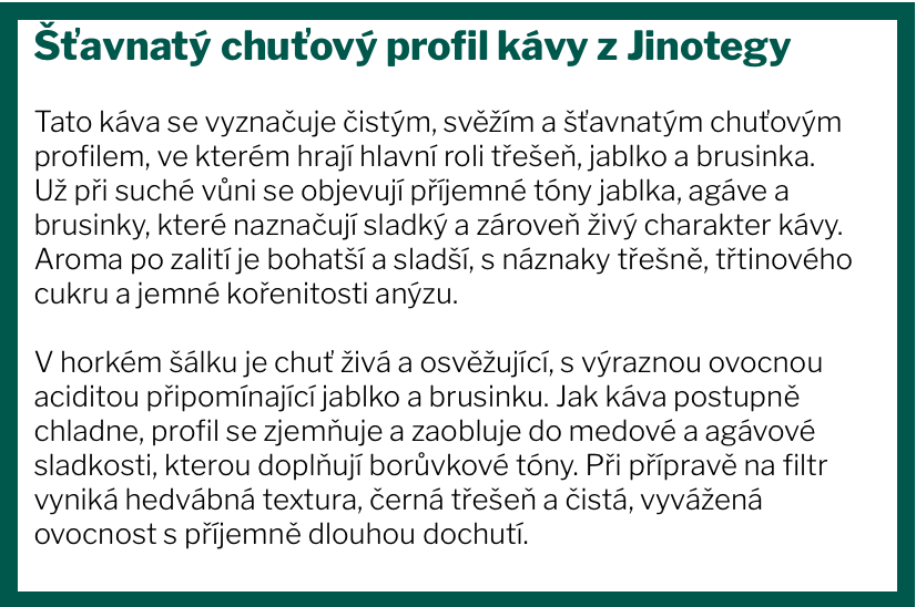 Nicaragua Jinotega Community Coffee je důkazem, že výběrová káva nemusí být výsadou malých mikrolotů. Tento komunitní lot pochází z hornatého regionu Jinotega, který je považován za srdce nikaragujské produkce kávy. Právě kombinace vysoké nadmořské výšky, chladnějšího klimatu a bohatých půd zde vytváří ideální podmínky pro pěstování arabiky s čistým a čitelným chuťovým profilem.